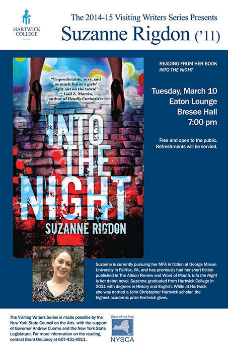 FIRST: I’ll be visiting my alma mater, Hartwick College on March 10th as part of their Visiting Writer’s series. I’ll be speaking with the Intro to Creative Writing Class in the morning, and then will host a reading (of some of my short fiction, as well as from Into the Night) at 7pm in Eaton Lounge, Bresee Hall. This event is for students, faculty and the public!
